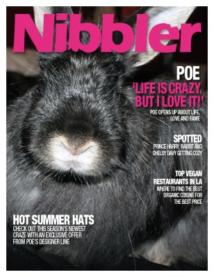 A couple of days later, Shana walks skips out of her office with a huge smile on her face. “Why don’t you do a celebrity branding campaign for Poe?!” (Poe is my pet rabbit.) At first I was weary about how that would even begin to work, but as we talked more about it – she could be the Kim Kardashian of bunnies (Kim K is apparently more likeable than Paris – or at least she was before that divorce), rich, famous for being famous (minus sex tape) and all that good stuff. So I think about it (we do a lot of that) and come up with a bio for Poe that I can draw inspiration from. I give Poe a logo that Shana immediately approves. Since I’d never gotten Shana’s immediate approval on anything before, that pumped me up. This could actually be something good!