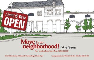 Back in January of this year, Shana asked me to help her with a marketing campaign for an outdoor shopping mall, Colony Crossing (an Ergon property). She had great ideas of ads and billboards we could design that would reflect the illustrative properties of the Colony Crossing website. Despite my being down about still not having a full-time job, I got excited about this. It sounded like a lot of fun and a good reason to stick around Ergon a little longer, so that I could add some stuff to my portfolio.