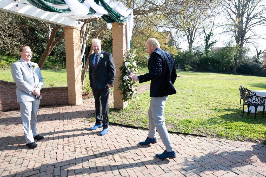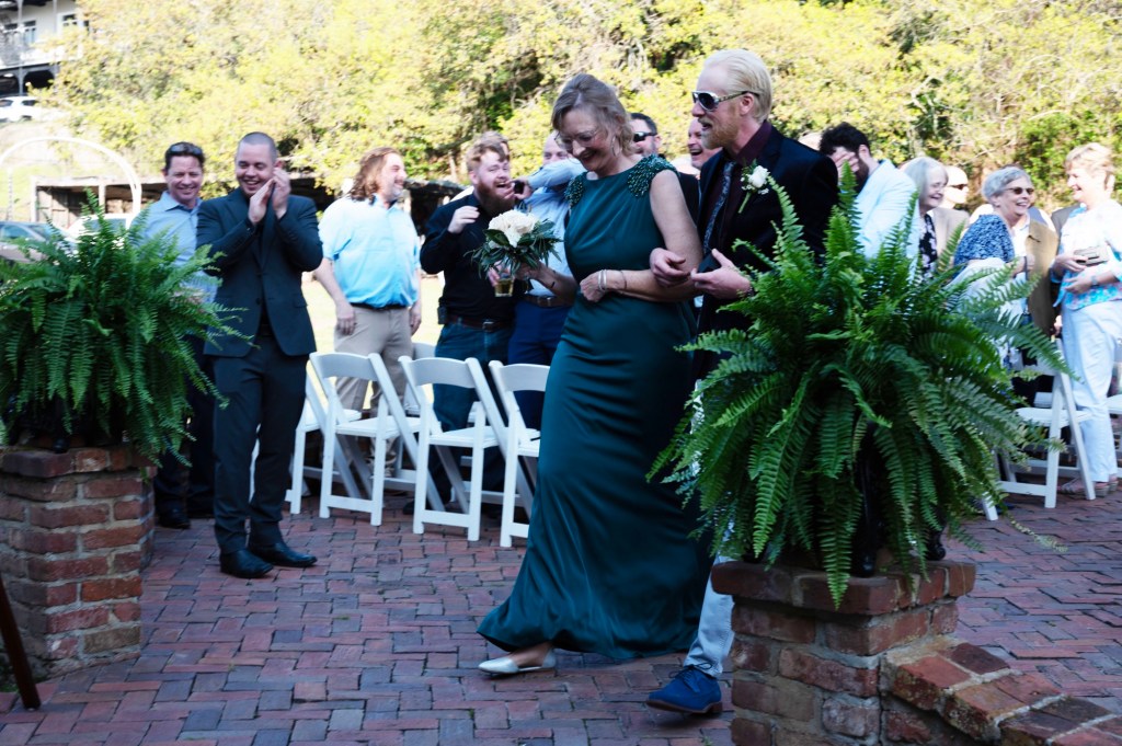 The ceremony began when James Brown’s “The Boss” started playing. That was Matthew’s “walk out” song, and I heard some giggling so I knew he’d made a good choice. He also had the brilliant idea to wear blue suede shoes with his suit, which everyone loved and is still talking about. Y’all know we talk about Elvis on a daily basis in our house – ask me anything, I know all about him. But the song cut off sooner than I expected. All of a sudden it was my turn, so I opened the door and walked out onto the balcony. My walk out song was “Can’t Help Falling in Love” played by the Vitamin String Quartet. I’m going to shamelessly admit that I’ve listened to that song and pictured this moment over and over again the last couple of months, and every time I burst into tears. I fully expected to do the same this time, but no tears came. Only pure joy and happiness. Seeing all of our friends and family together in one place to support our choice to swear our lives to each other was magical. It was everything I had dreamed of and then some. I knew we would never get a moment like this again, so I savored it all.