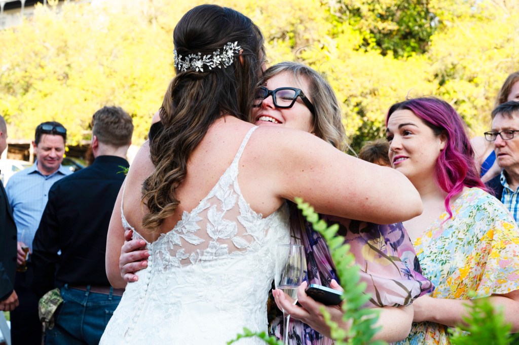 I met my mom at the bottom of the staircase and we made our way down the aisle hand in hand. We met Matthew and his brother, Daniel, and the officiant under the beautifully decorated pergola. Although I somehow ended up staring straight into the sun, it was a very sweet, Christian-based service. Exactly what we wanted. And Matthew’s “Hell yeah” instead of “I do” was a nice touch. Our officiant did an amazing job and no one lost the rings or tripped down the stairs. Great success!