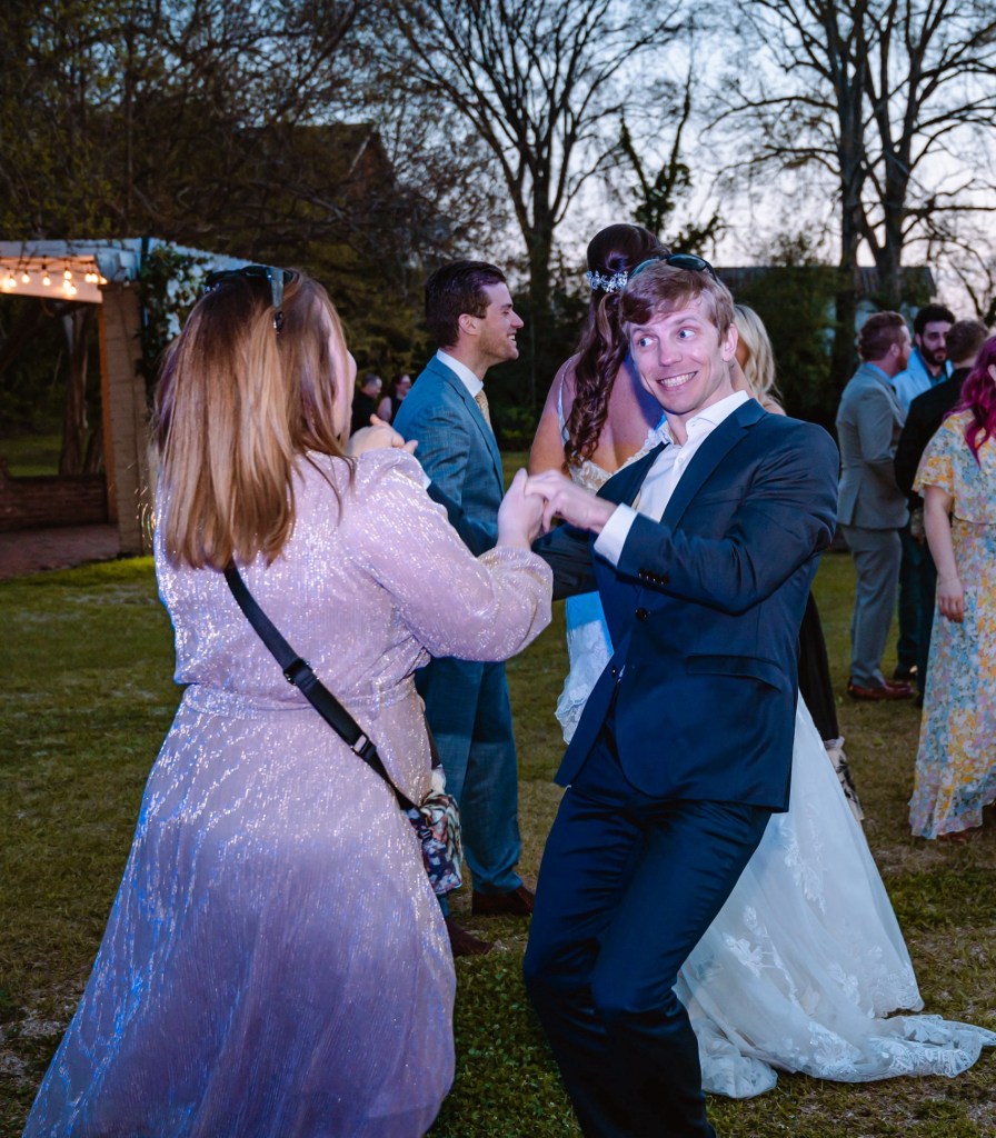 After the cake had been cut, it was time for the first dance. The song we picked out was months in the making, and we went back and forth on quite a few choices, but we finally landed on Matt’s choice of “Out of Left Field” by Percy Sledge. We asked Matt’s brother to sing the Allman Brothers version for us, which he did and did an amazing job. It was a bit awkward having people standing around watching us try to dance but we had Daniel invite everyone out there with us after the first chorus, so it ended up not being terrible! Our biggest fear was that we’d be out there long enough for people to realize we only know about two different moves, so I’m glad that didn’t happen. 😉